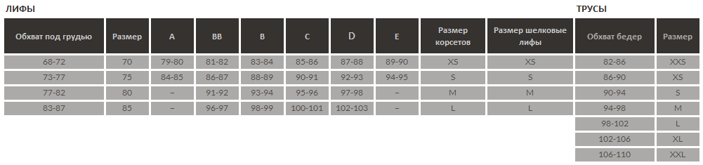 Таблица размеров